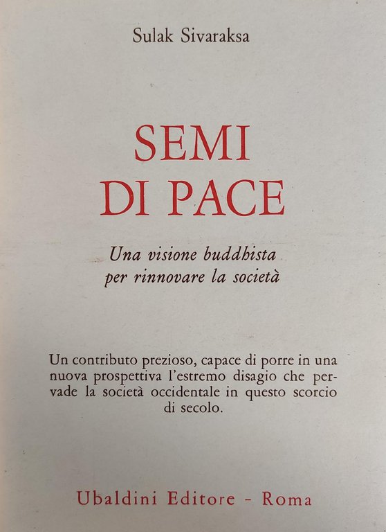 SEMI DI PACE. UNA VISIONE BUDDHISTA PER RINNOVARE LA SOCIETÀ