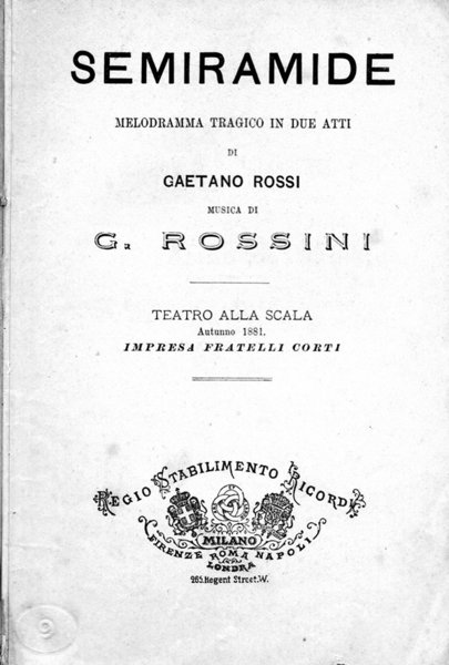 Libretto d’opera. Teatro alla Scala di Milano, Autunno 1881. Elenco dei personaggi completo dei nomi degli interpreti tra cui Medea Borelli e Luigi Colonnese.
