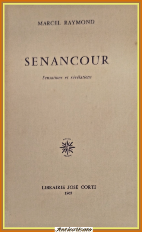 SENANCOUR Sensations et revelation di Marcel Raymond .Jose Corti Editore, 1965 . 251 pagine. Copertina editoriale in brossura. Stato di conservazione: molto buono (pagine normalmente ingiallite, ex libris e timbro privato di appartenenza) Libro usato saggistica letteraria
