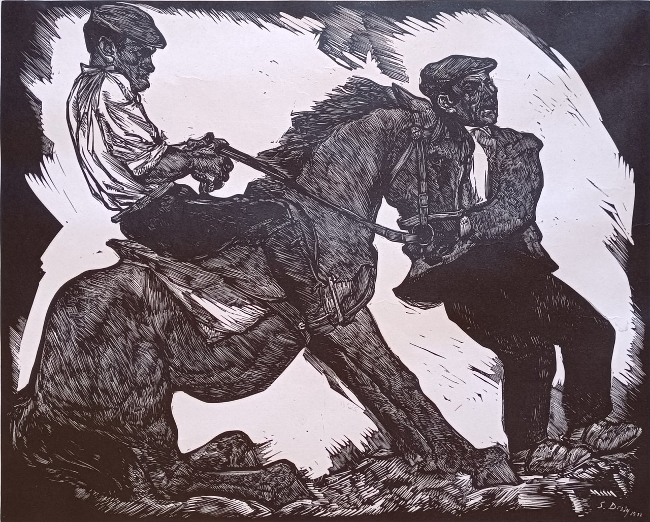 linoleografia foglio cm. 68,6 x 57,5 Buono (Good) Buon es., segni di nastro adesivo sul retro.