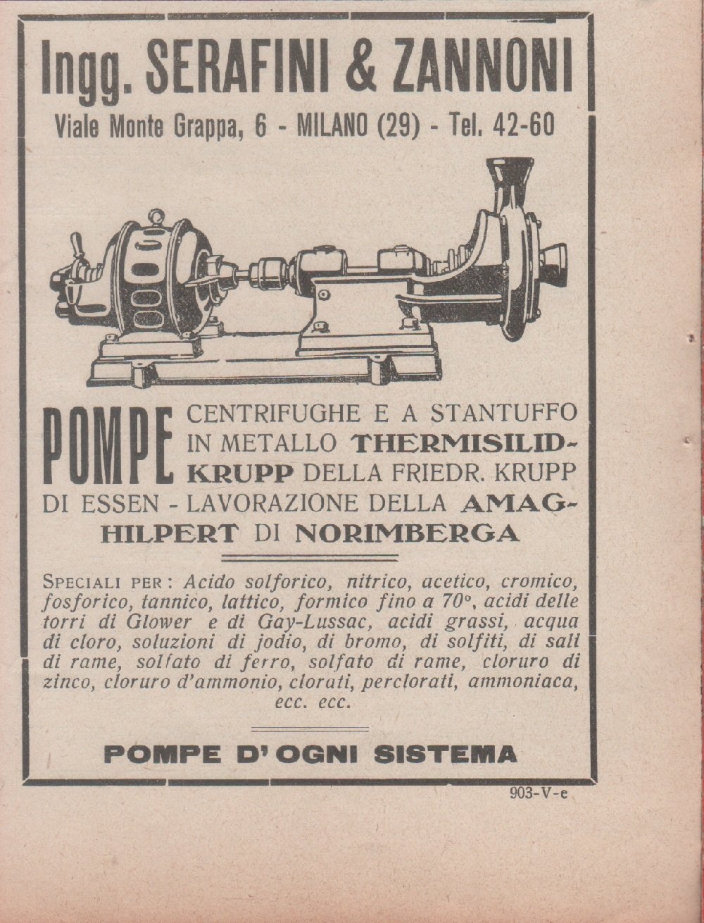 Serafini & Zannoni, Milano. Pompe d'ogni sistema. Milano. Advertising 1926