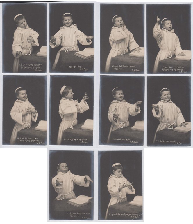 Serie completa 10 cartoline Fantasy bambino vestito da frate nvg 1910 c.a.