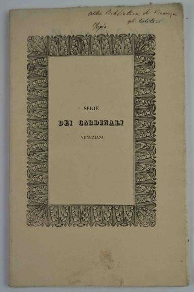Serie cronologica dei Cardinali veneziani tratta dalle memorie inedite di Alessandro Orsoni.