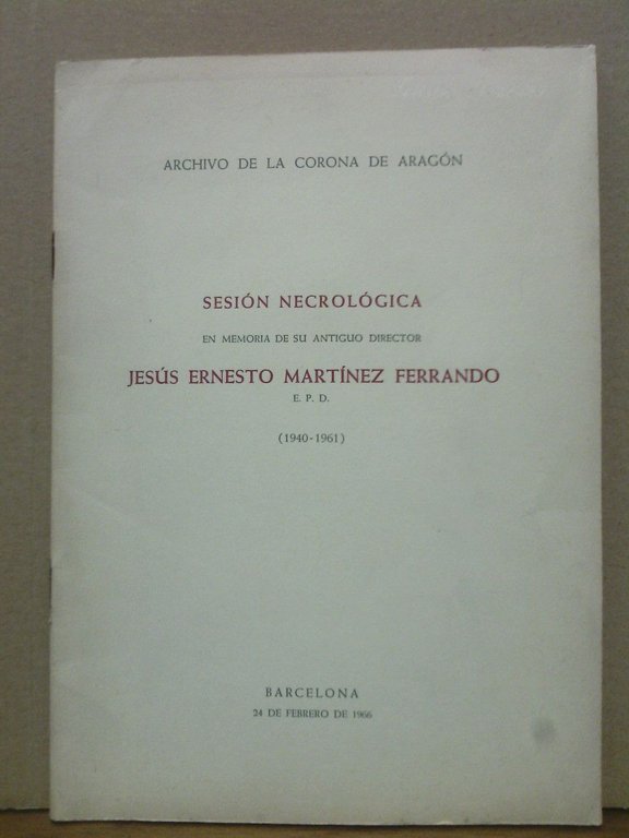 Sesión necrológica en memoria de su antiguo Director "Jesus Ernesto Martinez Ferrando" (19401961)