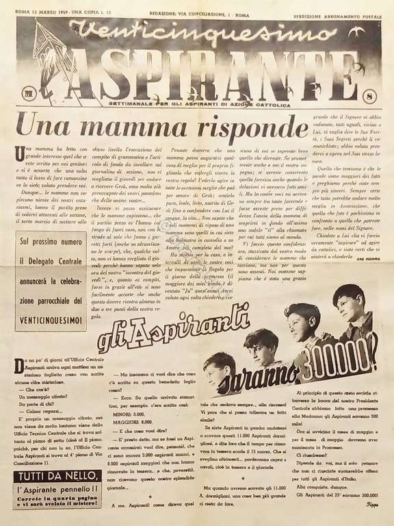 Settimanale Azione Cattolica - Venticinquesimo L'Aspirante - 13 Marzo 1949