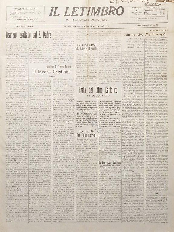 Settimanale Cattolico Savona - Il Letimbro N. 19 Festa del Libro Cattolico 1933
