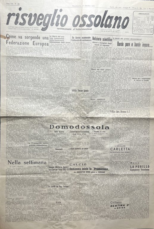 Settimanale d'Informazioni - Risveglio Ossolano N. 38 - 1952