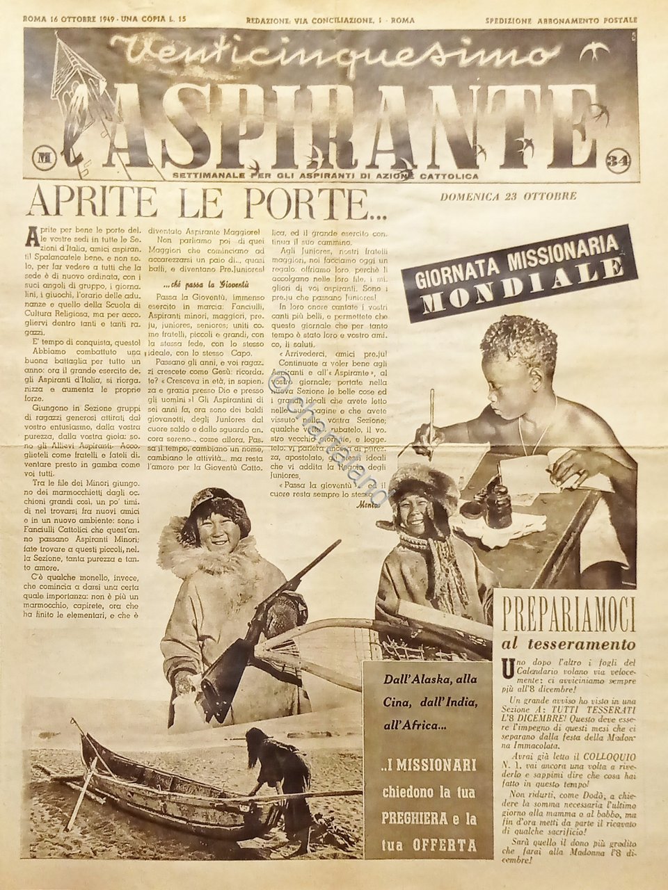 Settimanale di Azione Cattolica - Venticinquesimo L'Aspirante - 16 Ottobre 1949