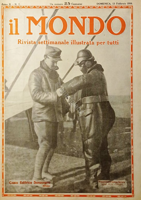 Settimanale WWI - Il Mondo N. 7 - Preparativi di volo su Gorizia - 1916 Testo in lingua italiana. Pagine 24 con illustrazioni. Condizioni molto buone.