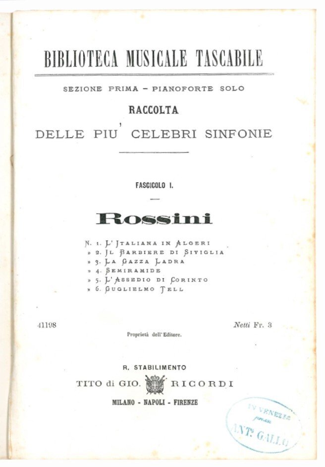 Sezione prima - Pianoforte solo. Raccolta delle più celebri sinfonie.