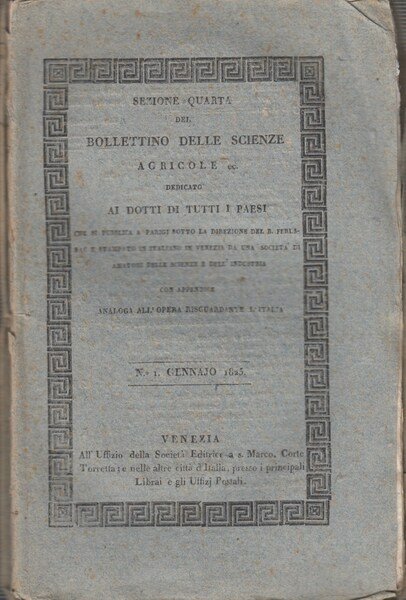 Sezione quarta del Bollettino delle Scienze Agricole ec. dedicato ai dotti di tutti i paesi n. 1 Gennaio 1825, n. 3 Marzo 1825, n.5