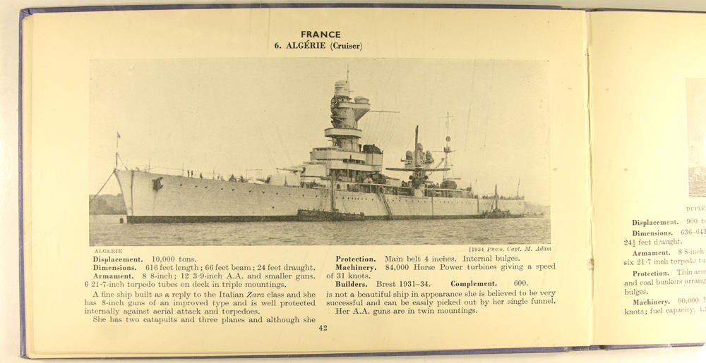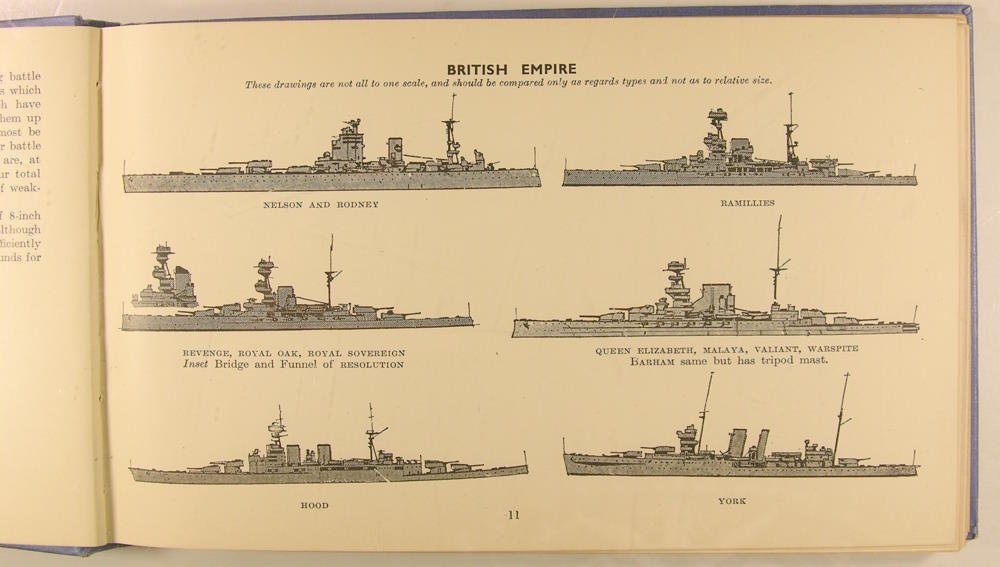 London, Sampson Low, Marston & Co., LTD, sans date 1938, in/8 format à l'italienne, en reliure éditeur, percaline bleu, 96 pages. Silhouettes des navires de guerre et photographies en noir et blanc.