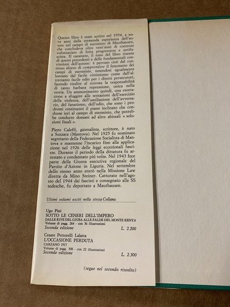 Prefazione di Ferruccio Parri. Scritta a penna in terza pagina<br/>Collana TESTIMONIANZE FRA CRONACA E STORIA 32 <br/>Legatura rilegato in similpelle con sovracoperta<br/>Formato Ottavo<br/>Num Pagine 234<br/>Illustrazioni 16 fotografie in b/n fuori testo<br/>Prima Edizione