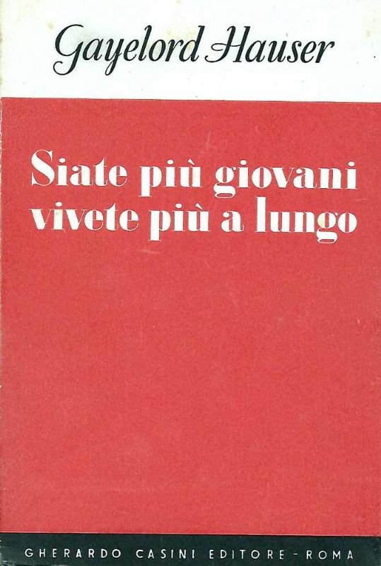 In-16°, leg. edit. in bross. pesante, pp. 406(2). All'occhietto, dedica e firma autografe dell'autore, e invio firmato dell'editore alla madre. Leggere fioriture alle primissime ed ultimissime pagine, per il resto ottimo esemplare di questa prima traduzione italiana di una delle opere fondamentale del celebre nutrizionista statunitense. Gayelord Hauser, dopo aver studiato in Germania, Danimarca e negli Stati Uniti, è stato autore di best-seller, e consulente nutrizionale di molte Star, fra cui Marlene Dietrich, Greta Garbo, Grace Kelly, Ingrid Bergman e Jeanne Moreau.