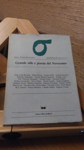 SIGMA RIVISTA DI LETTERATURA. QUADRIMESTRALE ANNO XVI 2-3 GRANDE STILE E POESIA DEL NOVECENTO
