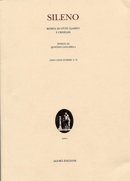 La Spezia, 2001; br., pp. 240, cm 24x24. (Sileno. Rivista di studi classici e cristiani fondta ada Quintino Cataudella, Anno XXVII. 1-2).