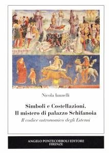 174 pagine. 65 ill. colori e b/n. Brossura con alette. cm 15 x 21. Commento dell'editore: La sala delle costellazioni di Palazzo Schifanoia a Ferrara costituisce uno dei più grandi misteri della storia dell'arte. La teoria presentata nel volume propone una nuova lettura degli affeschi, vista nel solco della tradizione rinascimentale delle rappresentazioni celesti, per la quale date ed eventi particolarmente importanti per i signori dell'epoca venivano impressi a futura memoria. La sala delle costellazioni si configura come un sistema simbolico indicativo di un preciso episodio storico: la data d'investitura che segna l'ascesa del duca Borso d'Este e il suo viaggio trionfale nelle terre del ducato. La ricerca, utilizzando appositi software astronomici e grafica computerizzata, giunge a trovare corrispondenze formali tra la configurazione del cielo alla data dell'investitura a duca di Borso d'Este e il sistema dei trionfi delle divinità classiche, delle costellazioni e dei decani, che influenzano e ispirano le attività del duca e della corte rappresentate nel ciclo pittorico. La fede che gli Este hanno nelle stelle è dichiarata presentando al mondo dell'epoca la rappresentazione delle costellazioni alla creazione" a duca di Borso d'Este, momento insieme culminante e di partenza della sua carriera politica."