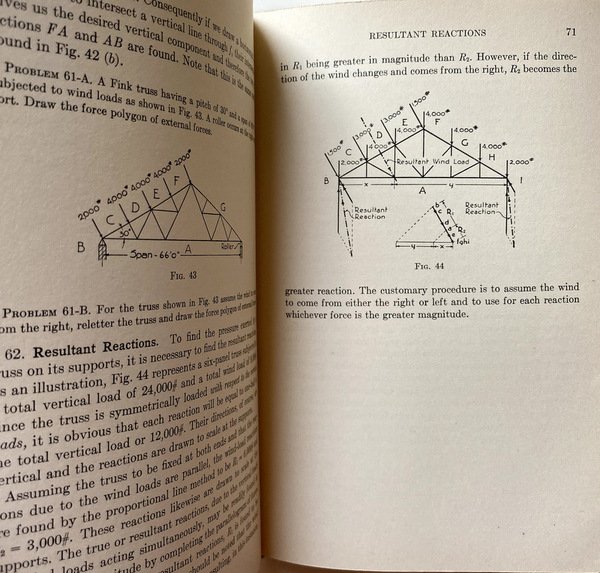 Soggetti: Vecchi manuali, Didattica, Architettura, Progettazione architettonica, Tetti, Capriata, Travi, Catene, Coperture, Puntoni, Statica, Monaco, Saette, Elasticità, Scienza delle costruzioni, Costruzione, Crafts, Hobbies, Home Improvement, Design, Rinascimento, Ritter, Castigliano, Leonardo da Vinci, Andrea Palladio, Capriate lignee, Legno, Strutture, Cupola, Travatura reticolare, Volta, Libri Vintage Fuori catalogo, Collezionismo cartaceo, Libri rari, Bibliografia, Riferimento, Teorie, Novecento, Anni Quaranta, Principi di base, Metodi, Edifici, Abitazioni, Case, Strutture, Elementi strutturali, Costruzione, Forza, Ingegneria, Equilibrio, Forze parallele, Materiali, Soluzioni, Problemi, Funicolare, Diagrammi, Grafici, Disegni, Fissaggio, Reazioni, Vento, Resistenza, Poligoni, Direzioni, Giunti, Acciaio, Ancoraggio, Misure, Calibro, Bulloni, Cuscinetti, Resistenza, Guaine, Travi, Tettoie, Arcarecci, Travicelli, Timpani, Verifiche, Prove, Controventi di falda, Falso traverso, Collegamenti longitudinali, Portali, Corsa, Carichi, Figure, Illustrazioni, Impalcati, Orditure, Matematica, Algebra, Calcolo, Archi, Pratt, Howe, Old manuals, Education, Architecture, Architectural design, Roofs, Truss, Beams, Chains, Roofing, Struts, Static, Monk, Lightning, Elasticity, Construction science, Construction, Renaissance, Wooden trusses, Wood, Structures, Dome, Truss, Vault, Out of print books, Paper collectibles, Rare books, Bibliography, Reference, Theories, Twentieth century, Forties, Basic principles, Methods, Buildings, Dwellings, Houses, Structures, Structural elements, Construction, Strength, Engineering, Equilibrium, Parallel forces, Tests, Materials, Solutions, Problems, Funicular, Diagrams, Graphs, Drawings, Fastening, Reactions, Wind, Resistance, Polygons, Directions, Joints, Steel, Anchorage, Measurements, Caliber, Bolts, Bearings, Resistance, Sheaths, Beams, Canopies, Purlins, Rafters, Verifications, Ground braces, False transverse, Longitudinal connections, Portals, Travel, Figures, Illustrations, Decks, Structures, Mathematics, Calculation