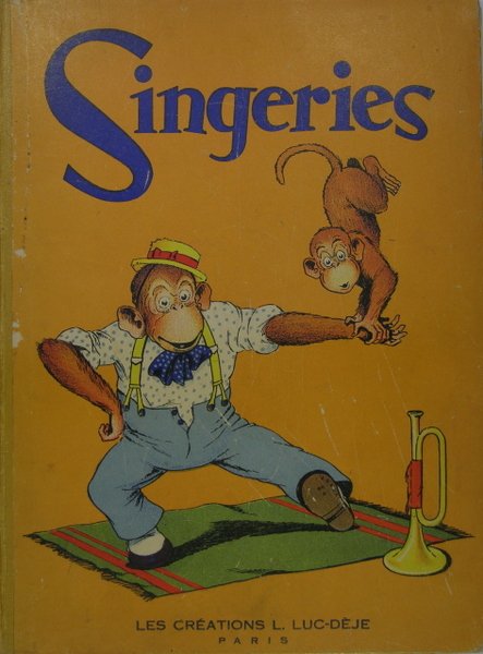 Duc Dèje, Paris, s.d. (vers 1945). In/4 reliure éditeur demi-toile, cartonnage éditeur illustré, 24 pages en couleurs. Petites usures sur les coins et bords des plats, traces de manipulations sur les bords inférieurs des feuillets. André Galland né en 1886 et mort en 1965. Dès 1904, il illustre des livres pour la jeunesse, notamment pour les éditions Offenstadt. Avant 1914, il réalise des fascicules de romans populaires et des illustrations, grâce à Charles Clérice qui ayant besoin d’un aide le prend à ses côtés. Il succède à René Giffey pour la bande dessinée L’espiègle Lili dans la revue Fillette, en 1916. Il participera à la création des personnages Ninette et Clolo, avec Joseph Valle. Il contribue également à deux autres revues pour enfants, L'Épatant et L'Intrépide. Lorsque les progrès de la photographie retirèrent aux dessinateurs-reporters leur gagne-pain, il resta l'un des derniers à concurrencer victorieusement l'appareil, notamment dans les colonnes de L'Illustration. Après la guerre il conserva, par goût plus que par nécessité, le reportage judiciaire. Il se passionnait pour les grands procès et crayonna des centaines de croquis d'audience. Certains de ces "clichés" passaient à la une du Parisien. Il travailla aussi pour d'autres journaux, comme illustrateur ou dessinateur, tels que Le Dimanche Illustré, Les Belles Images, Le Petit Journal, Le Journal, Le Matin ou encore Le Charivari.