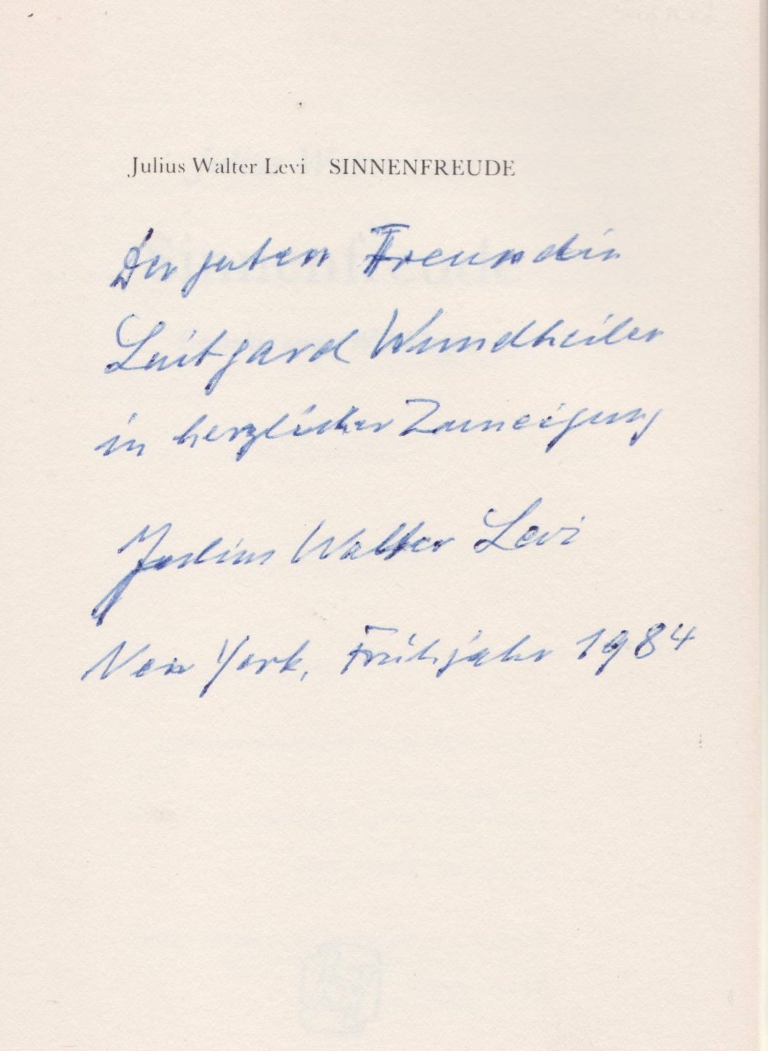 Sinnenfreude. Gedichte eines Weltbürgers. (Widmung des Autors!)