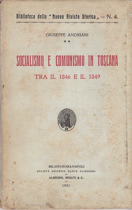 In-8 (Cm 23 x 15), pp. 60, brossura editoriale. Collana Biblioteca della Nuova Rivista Storica, 4. Ex libris Ermanno Bartellini ed ex libris Giordano Bruno Guerri al colophon. Brossura con piccolo strappetto, ingialliture e segni d'uso, alcune pagine brunite. Segni del tempo. BUONO