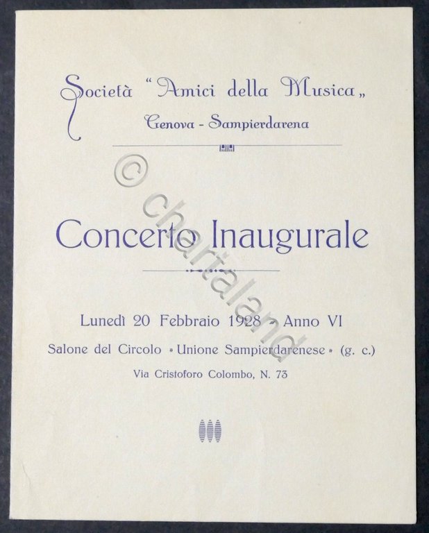 Società Amici della Musica - Genova - Concerto Inaugurale - Programma - 1928