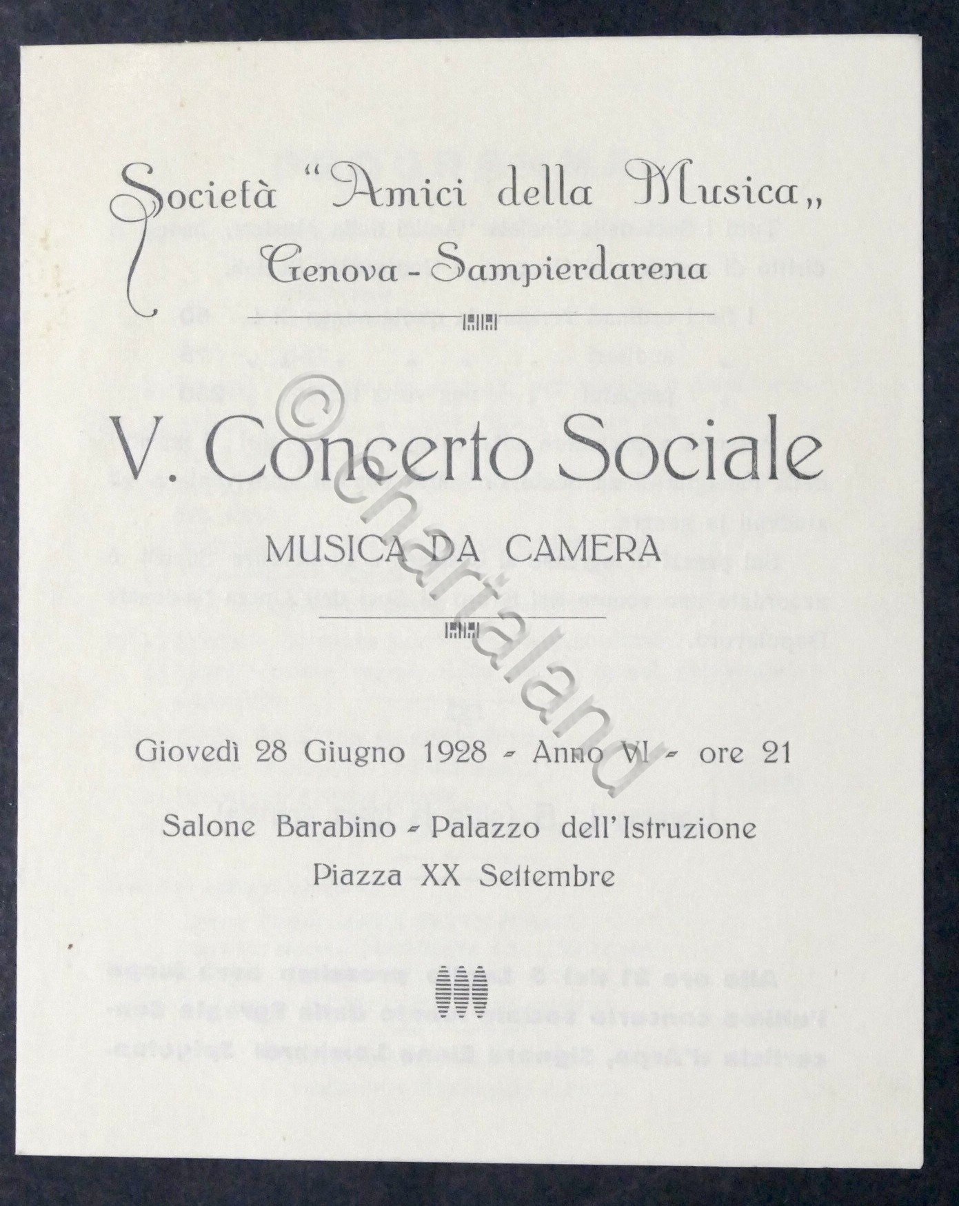 Società, Amici della Musica - Genova - V°, Concerto Sociale - Musica da Camera: Programma - 1928