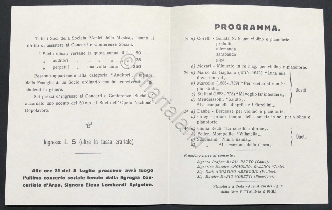 Società Amici della Musica - Genova - V° Concerto Sociale - Programma - 1928