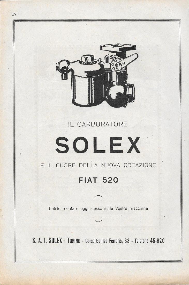 Società Nazionale dei Radiatori / Carburatore Solex. Advertising 1928