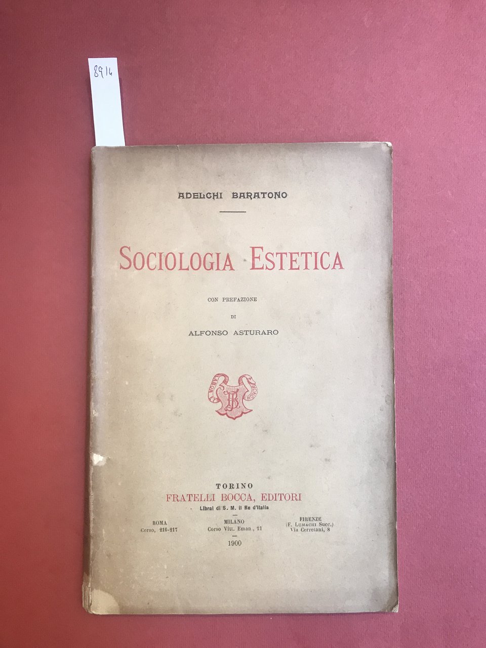 In-8°, pp. XXVI, 105, brossura editoriale. Esemplare intonso, mancanza alla cuffia inferiore del dorso.