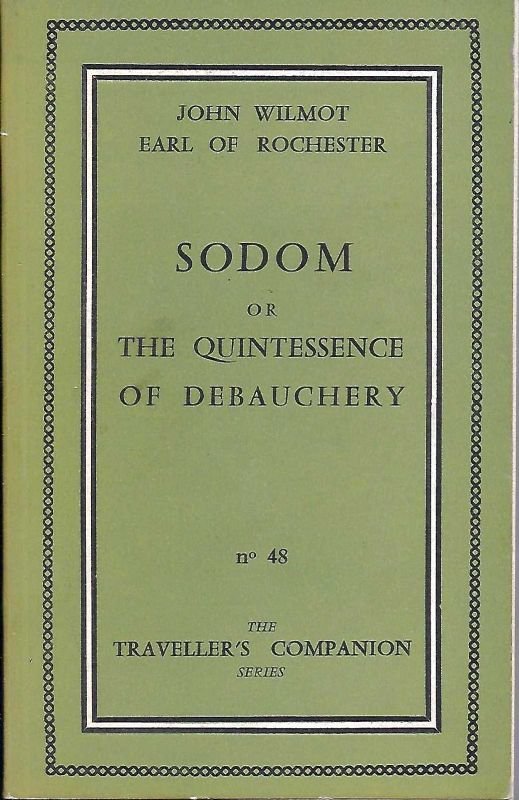 In-16°, legatura in brossura editoriale, pp. 123, con un ritratto dell'autore all'antiporta. -(Sodom, or the Quintessence of Debauchery, fu considerata oscena, a causa del tema della storia, nella quale 'un lussurioso re decide di stabilire la libertà nella nazione, permettendo che la sodomia venga praticata su tutto il territorio'. Questa viene considerata come la 'prima opera teatrale al mondo a sfondo pornografico').
