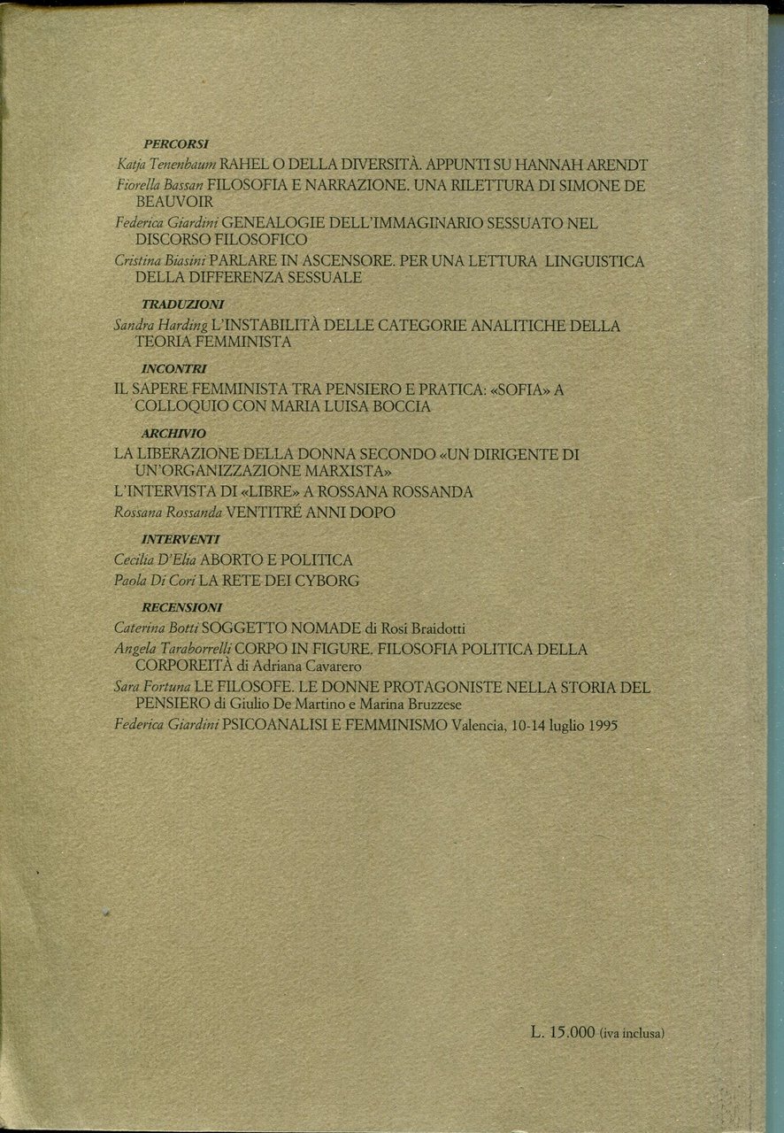Sofia : materiali di filosofia e cultura di donne. N. 0 (gen.-giu. 1996) | Libri antichi e moderni | Semestrale, ,Semestrale
