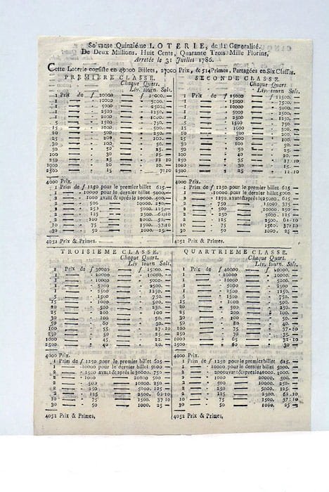 SOIXANTE QUINZIEME LOTERIE de la Généralité. De deux millions, huit cents quarante trois mille florins. Arrétée le 31 Juillet 1786.