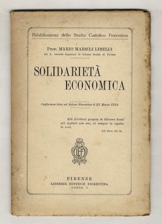 Solidarietà economica. Conferenza letta nel Salone Fiorentino il 23 marzo 1924.