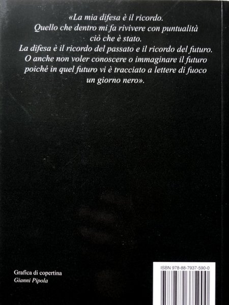 «La mia difesa è il ricordo. Quello che dentro mi fa rivivere con puntualità ciò che è stato. La difesa è il ricordo del passato e il ricordo del futuro. O anche non voler conoscere o immaginare il futuro poiché in quel futuro vi è tracciato a lettere di fuoco un giorno nero».