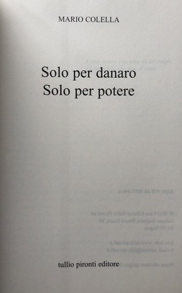 Titolo: Solo per danaro, solo per potere