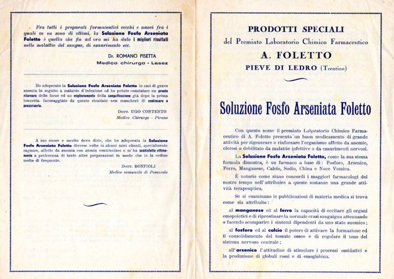 Prodotti speciali del Premiato Laboratorio Chimico Farmaceutico A. Foletto, Pieve di Ledro (Trentino).