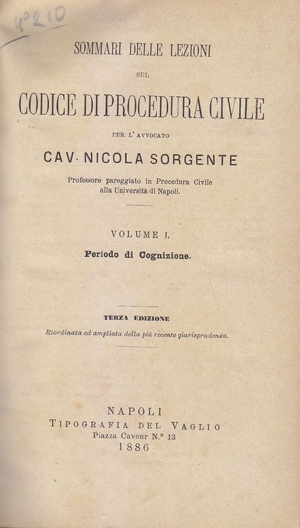 SOMMARI LEZIONI CODICE DI PROCEDURA CIVILE 2 volumi in 1 Nicola Sorgente 1884 86