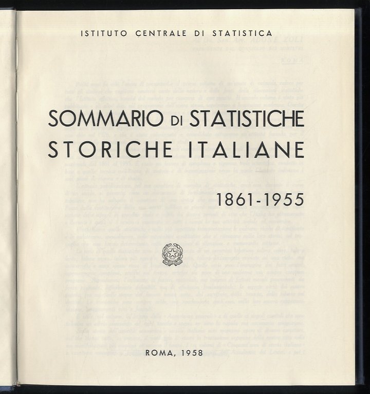 Sommario di statistiche storiche italiane. 1861 - 1955.
