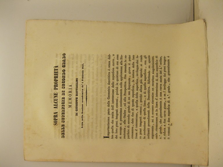 Sopra alcune proprieta' delle superficie di secondo grado. Memoria letta nella Sessione accademica de' 4 febbraio 1857