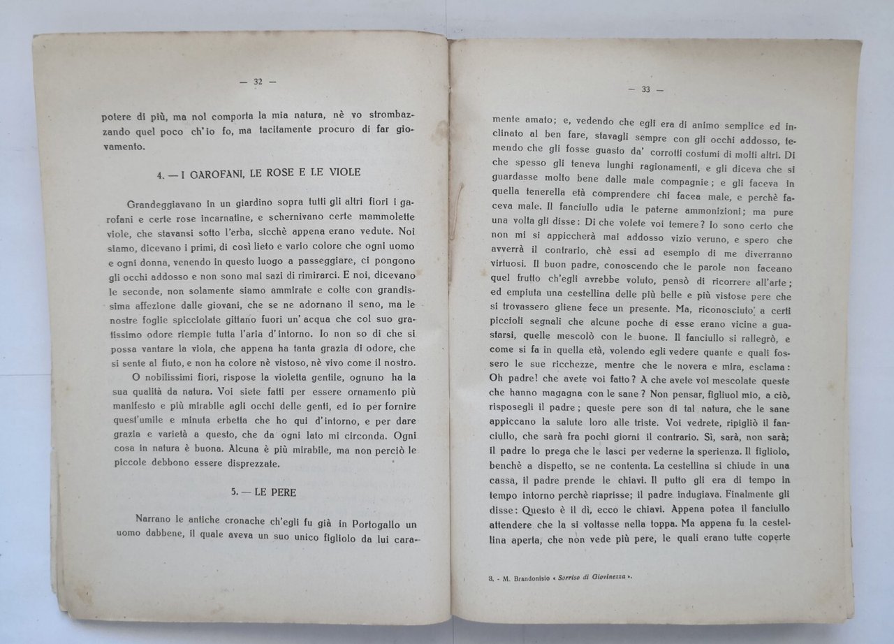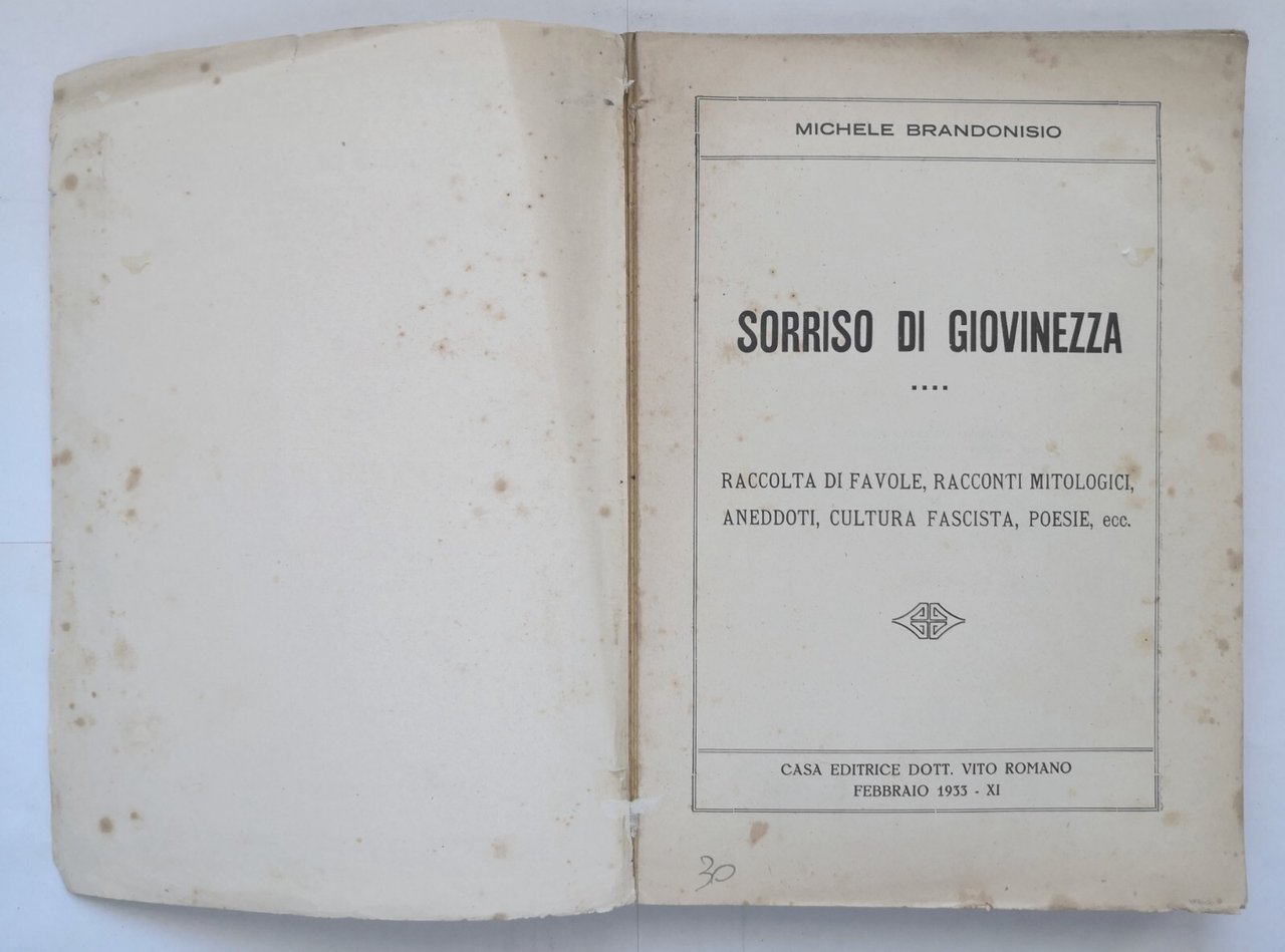 SORRISO DI GIOVINEZZA di Michele Brandonisio. Raccolta di favole, racconti mitologici, aneddoti, cultura fascista, poesie, ecc.