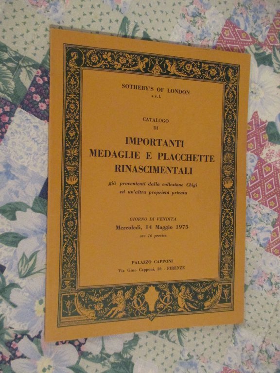 Sotheby’s of London. Catalogo di importanti medaglie e placchette rinascimentali già provenienti dalla collezione Chigi ed un’altra proprietà privata.