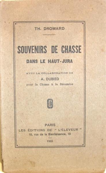 Paris, les éditions de l’éleveur, 1935. In/8 broché, couverture imprimée, illustrations in-texte en noir, 177 pages. Un des 500 exemplaires numérotés. Avec la participation de A. Dubied pour la Chasse à la Bécassine. Mouchon col. 1121. L’auteur figure également au Thiebaud pour son ouvrage “Quarante années de chasse à la bécasse en Franche Comté”.