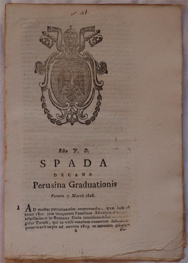 SPADA DECANO PERUSINA GRADUATIONIS VENERIS 7 MARTII 1828