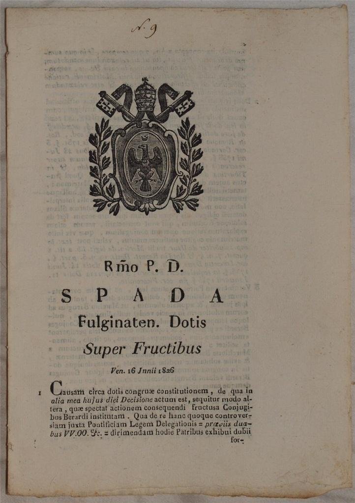 SPADA FULGINATEN DOTIS SUPER FRUCTIBUS VEN. 16 JUNII 1826
