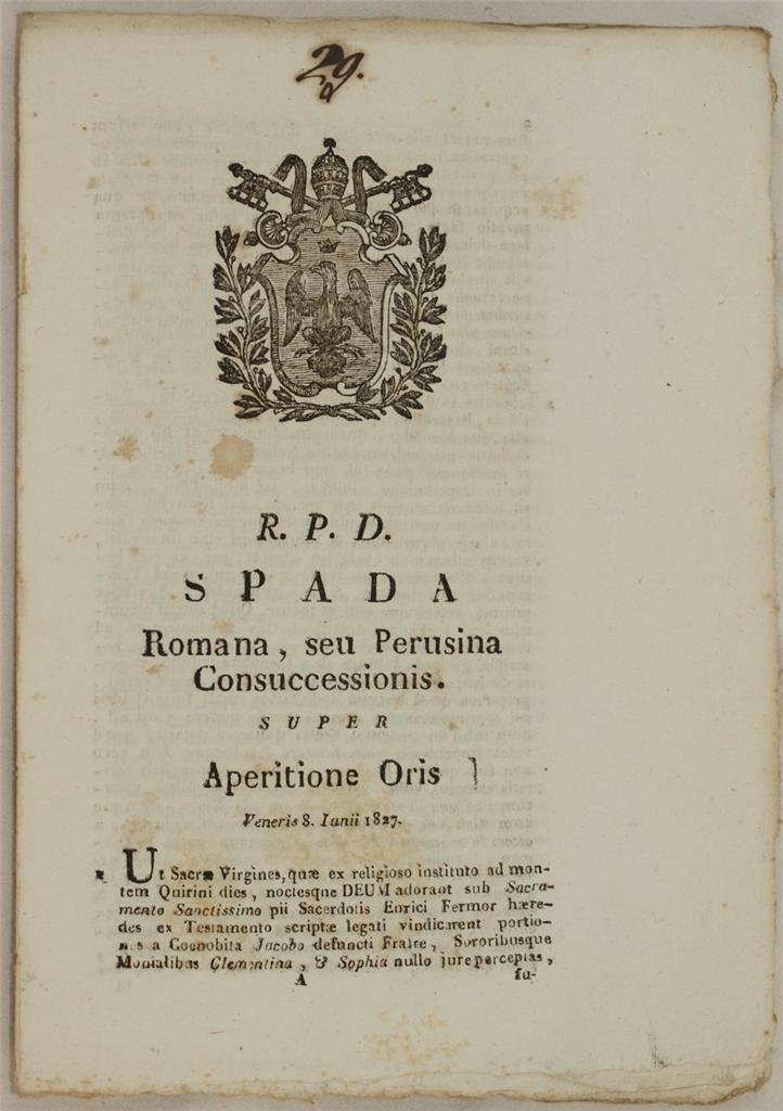 SPADA ROMANA SEU PERUSINA CONSUCCESSIONIS SUPER APERITIONE ORIS VENERIS 8 JUNII 1827