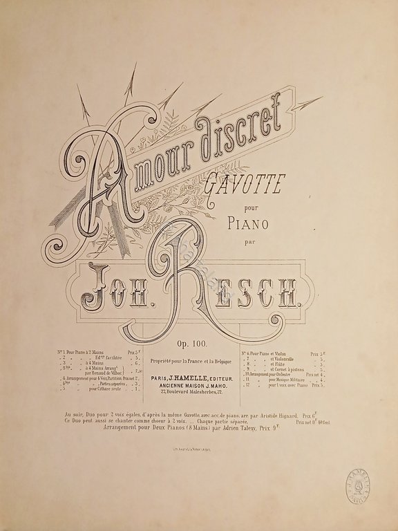 Spartiti - Amour Discret - Gavotte pour Piano par Johann Resch Op. 100