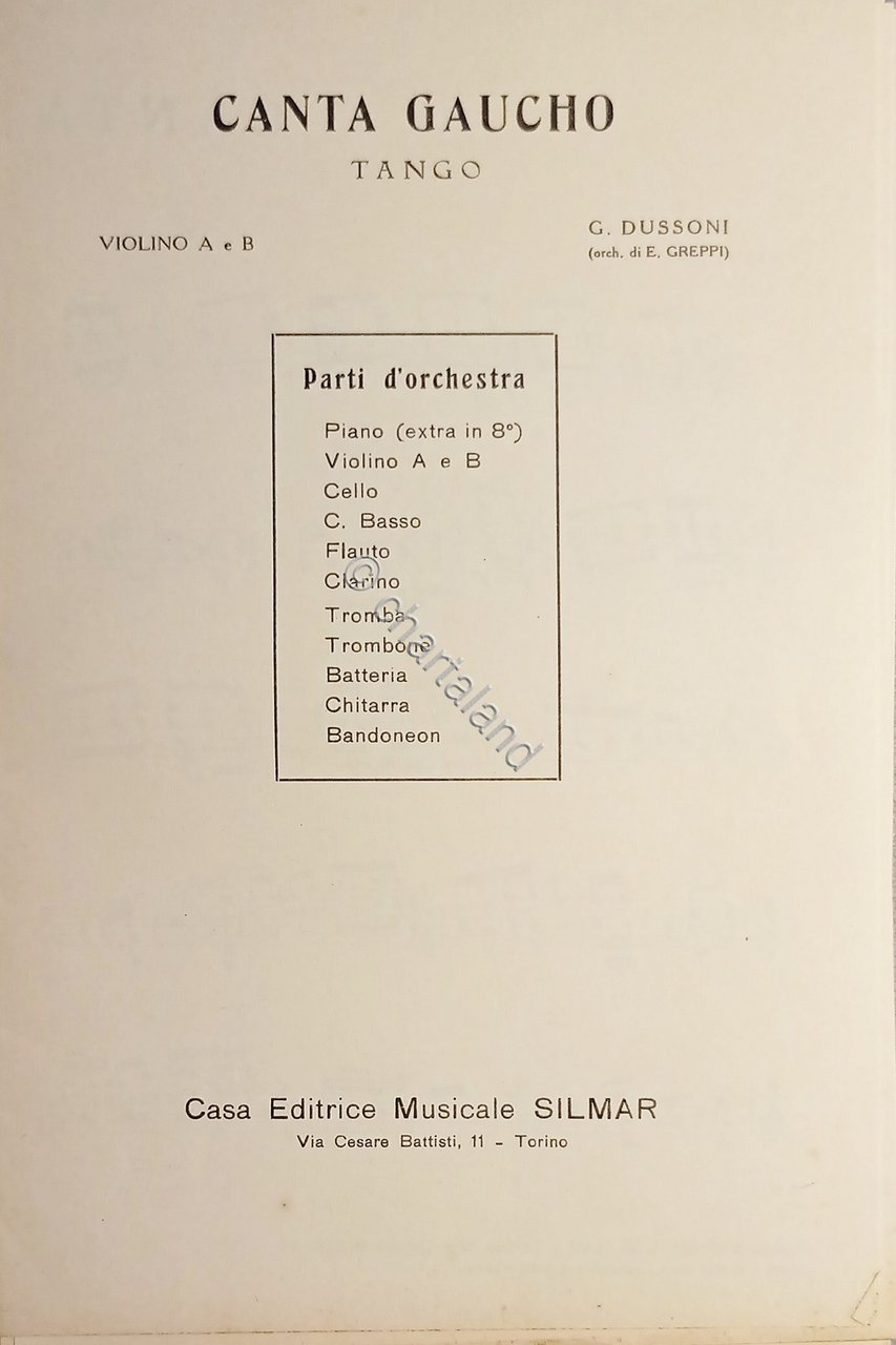Spartiti - Canta Gaucho - Tango - Violino A e B di G. Dussoni