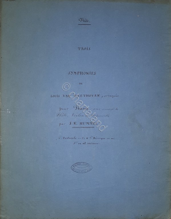 Spartiti - Flute - Trois Symphonies de L. van Beethoven, arrangées pour Piano, avec accomp. de Flute, Violon et Violencelle par J. N. Hummel pour Piano, avec accomp. de Flute, Violon et Violencelle par J. N. Hummel - Fine '800 Copertina morbida, Pag. 20 ca. Condizioni molto buone