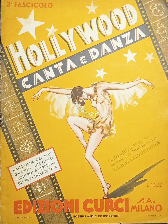 Spartiti - Hollywood Canta e Danza - Raccolta dei Grandi Successi Americani - 1938 - 3^ Fascicolo Formato grande. Pagine 39 Condizioni molto buone.
